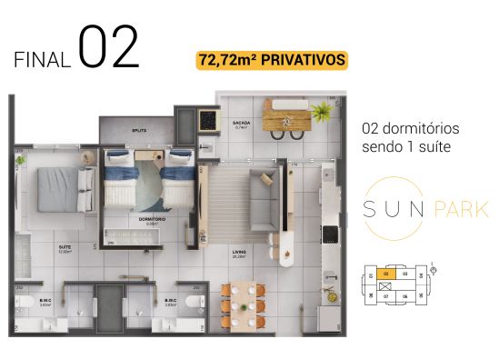 72,72 m² área útil